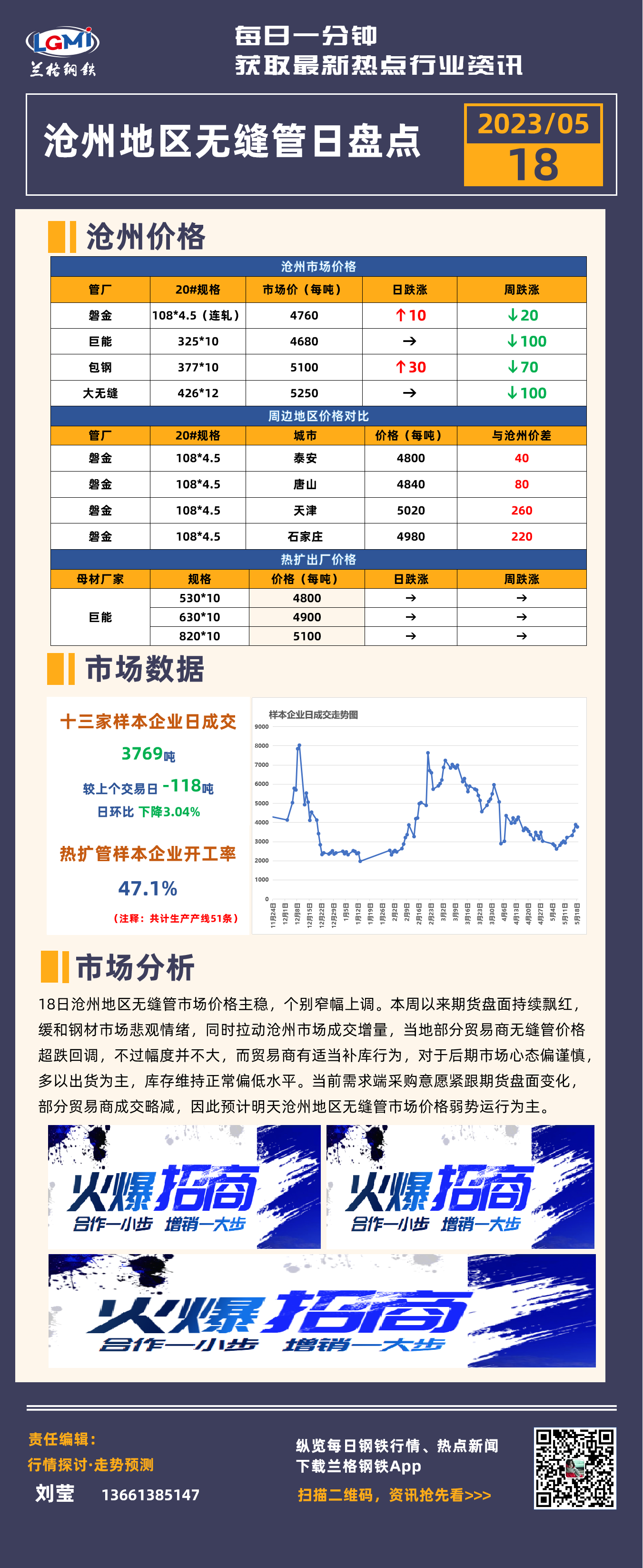 沧州无缝管日盘点:价格窄幅探涨 成交略有减量