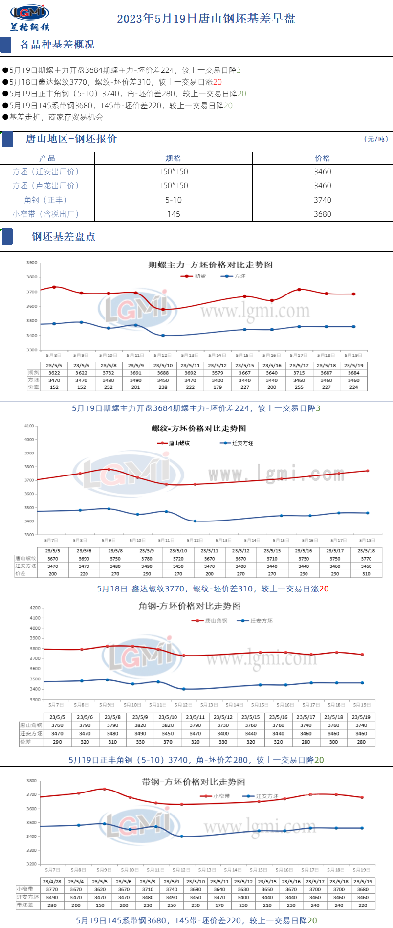 2023年5月19日唐山钢坯基差早盘