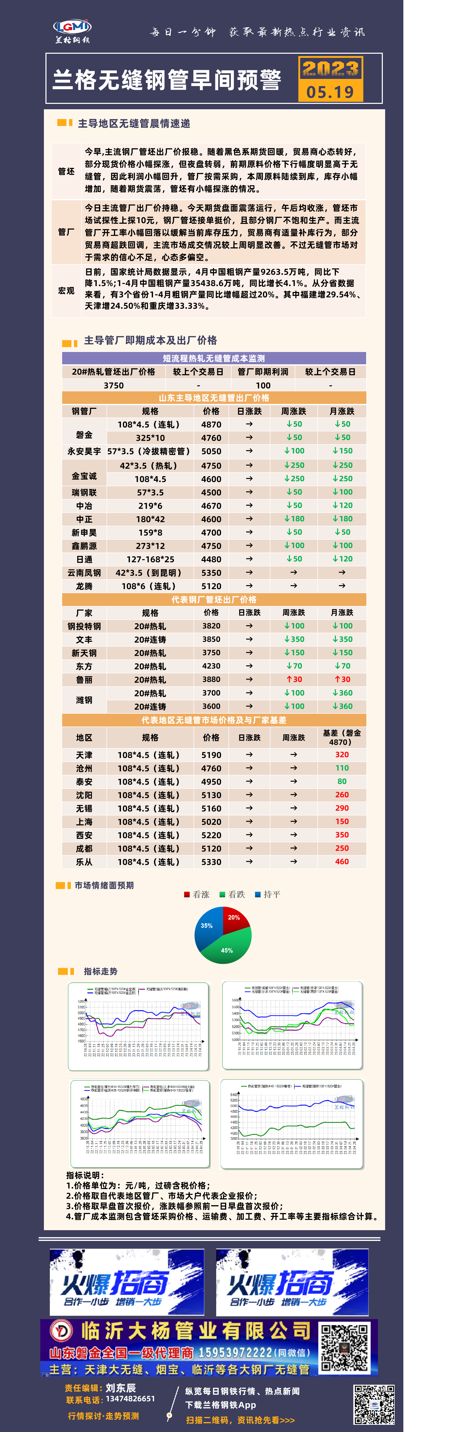 5月19日(9:20)兰格无缝管钢管早间预警