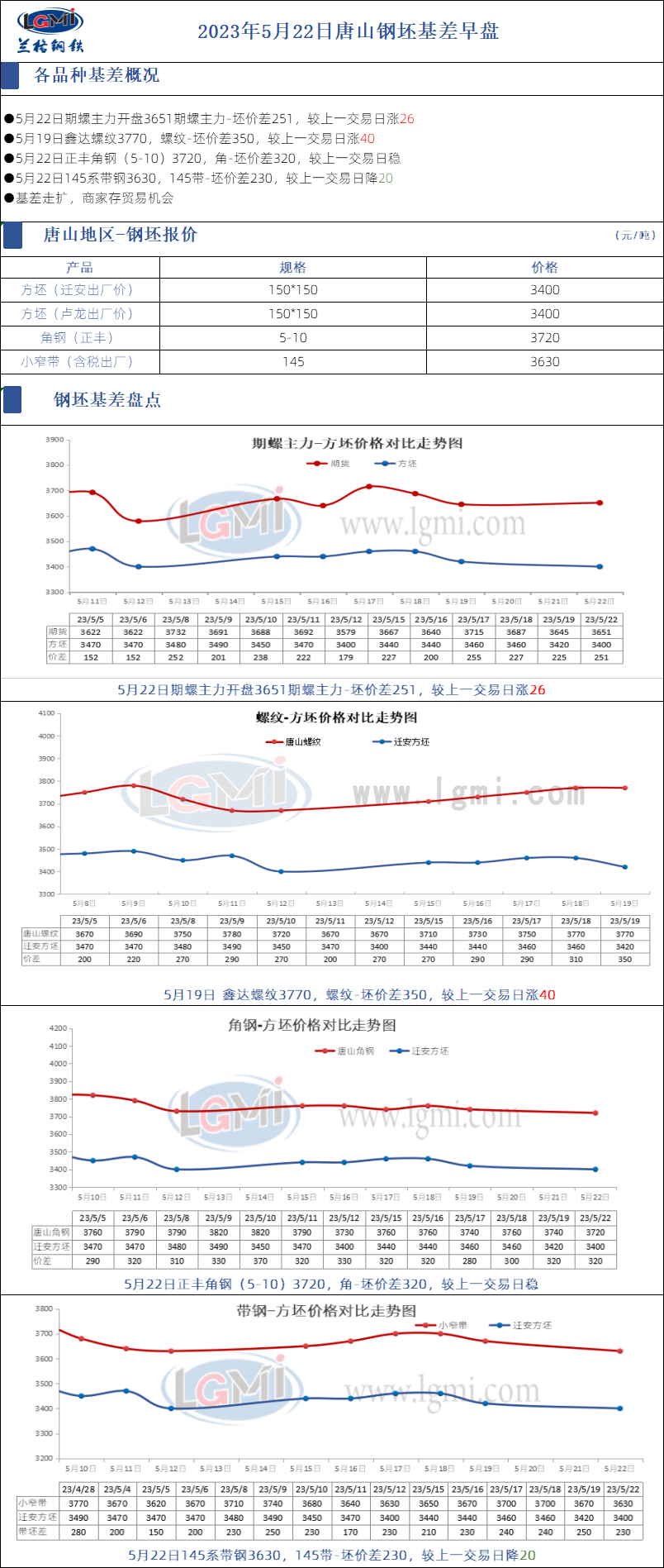 2023年5月22日唐山钢坯基差早盘
