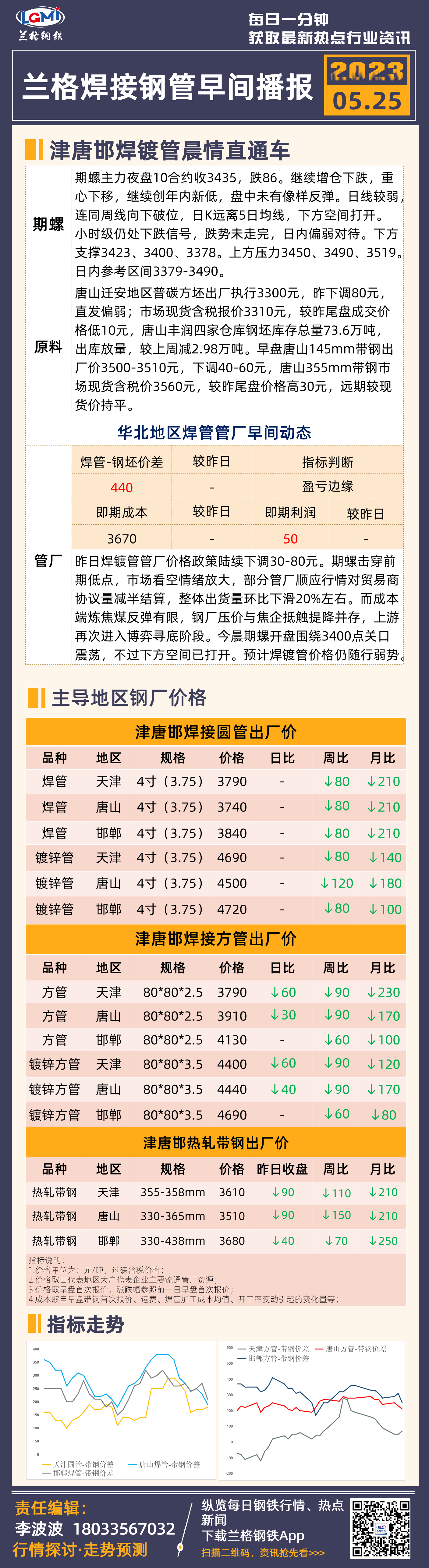 5月25日(9:20)兰格津唐邯焊管、镀锌管早间速递