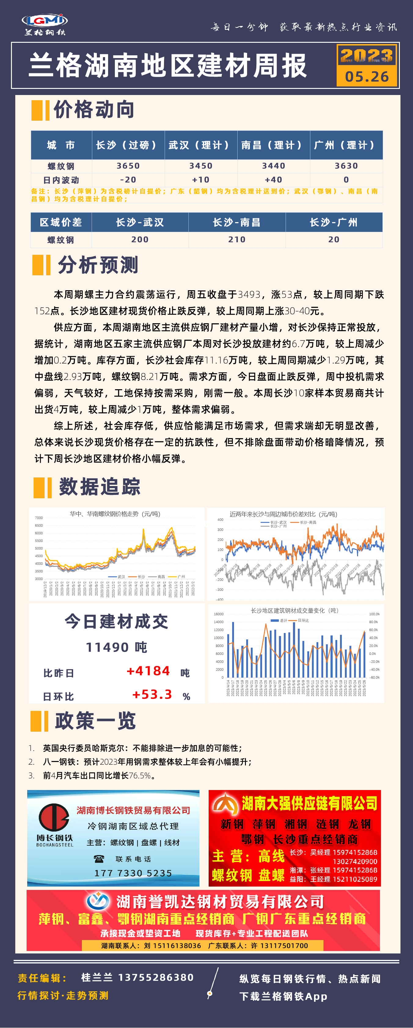 - 长沙建筑钢材库存统计(05.26)2023/5/26