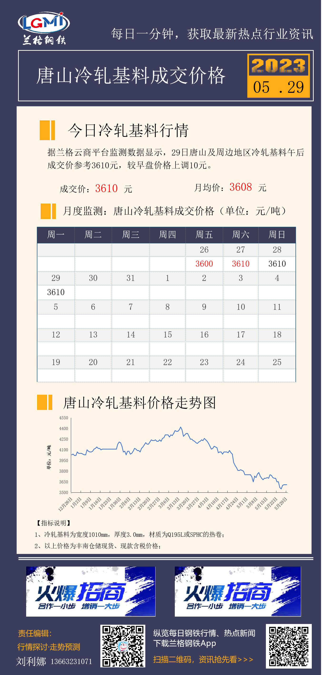 5月29日唐山冷轧基料成交价格