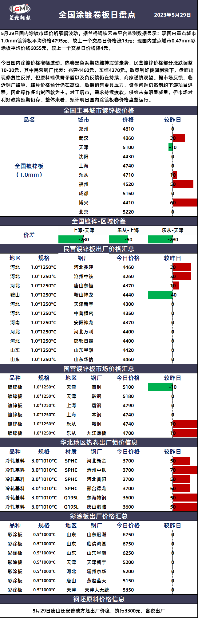- 5月29日全国钢厂建筑钢材调价汇总2023/5/29
