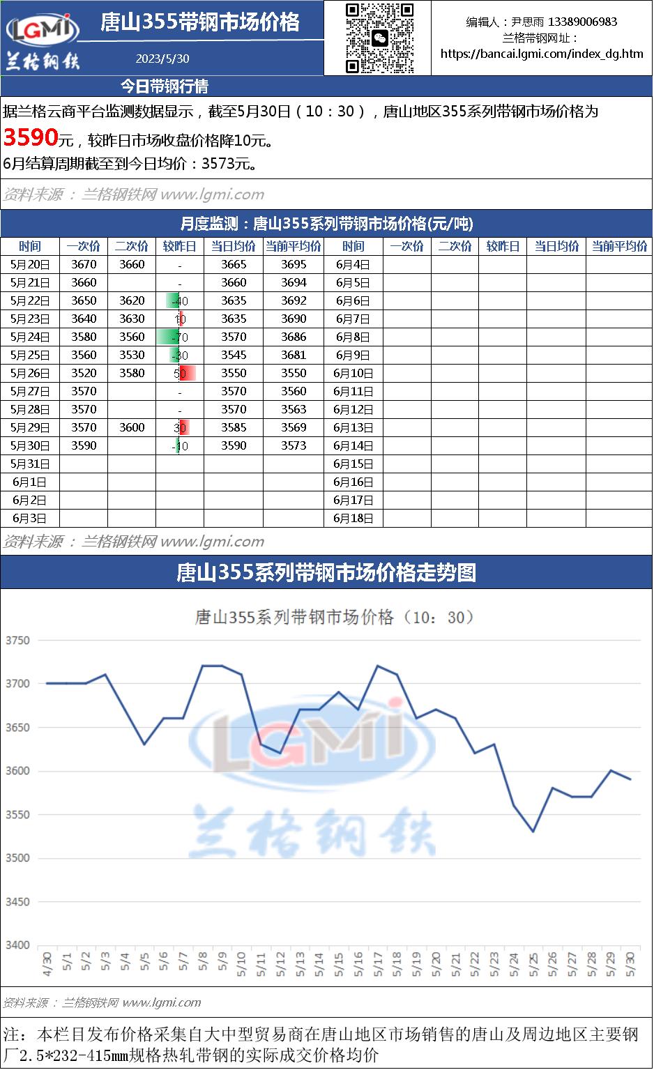 - 5月30日(10:30)唐山355系带钢市场价格2023/5/30