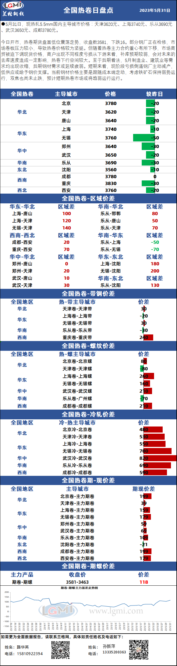- 兰格热卷日盘点:现货市场价格小幅下降 整体补库需求预期较弱2023/5/31