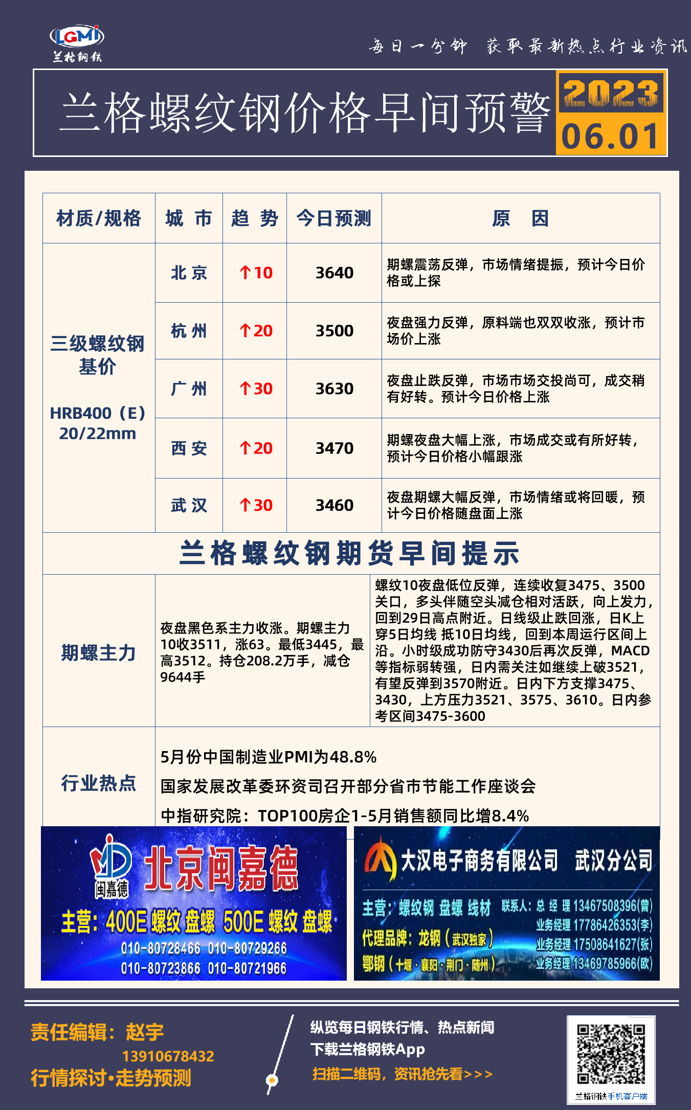 6月1日兰格螺纹钢价格早间预警