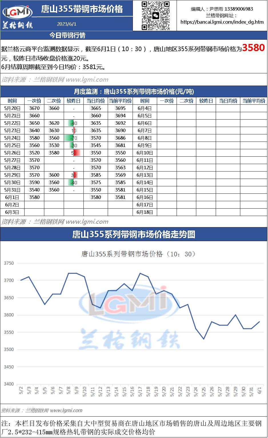 - 6月1日(10:30)唐山355系带钢市场价格2023/6/1