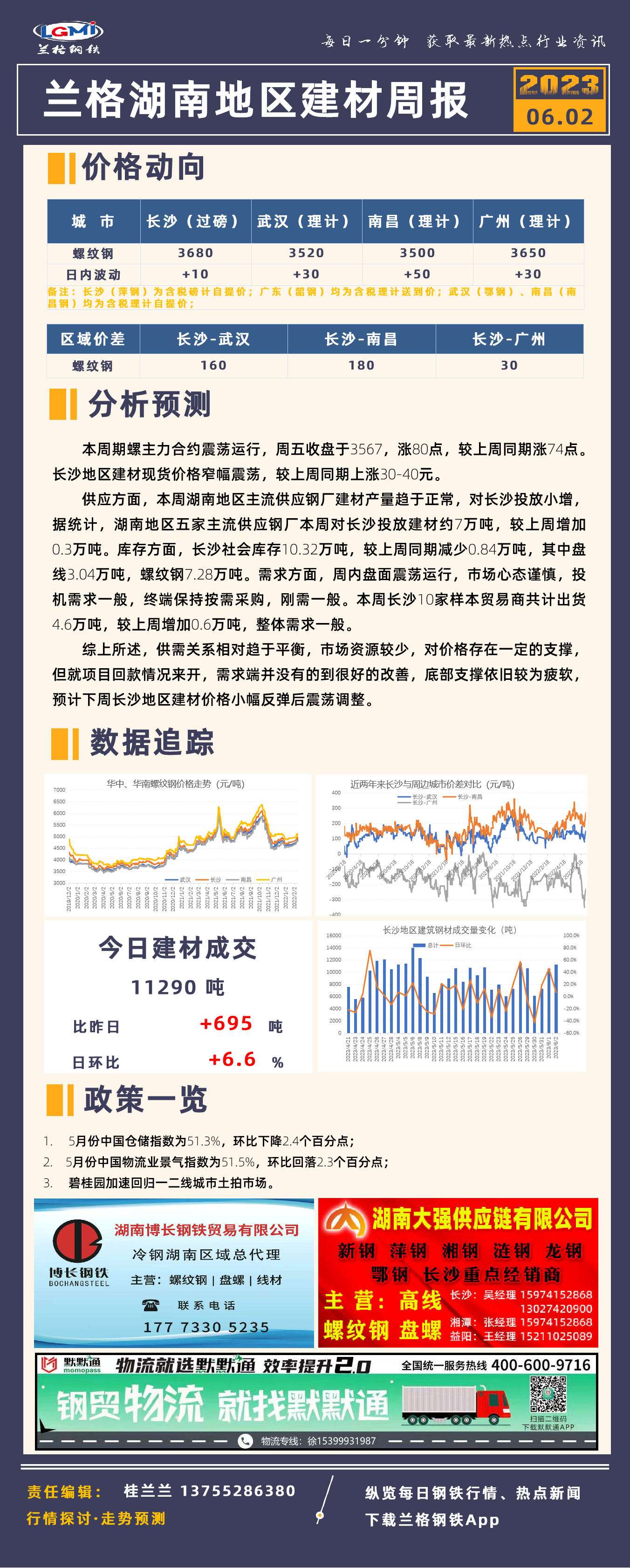 - 长沙建筑钢材库存统计(06.02)2023/6/2