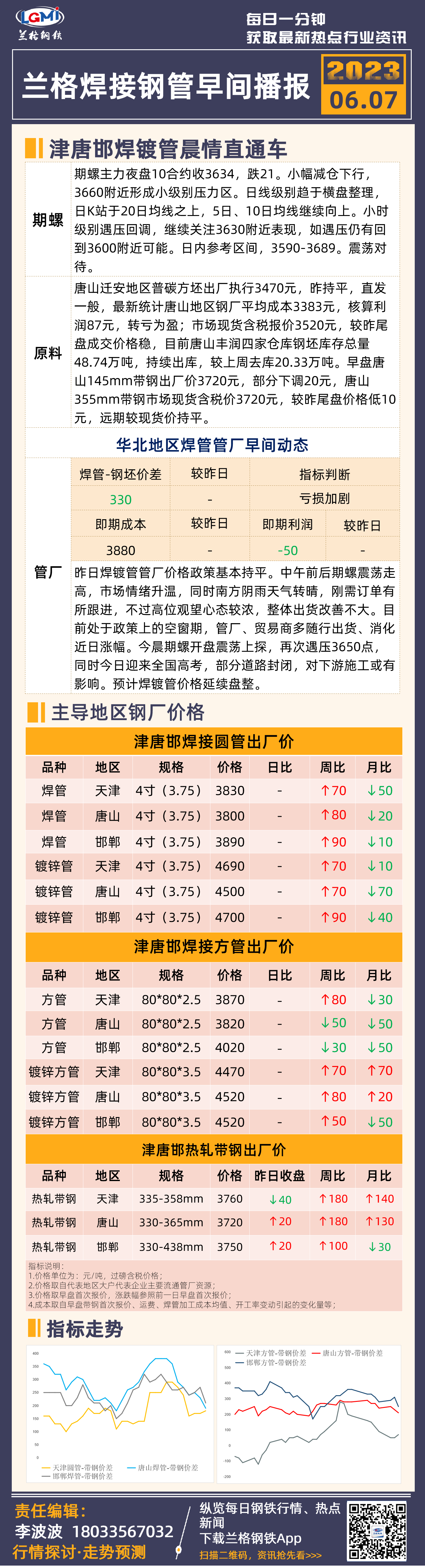 6月7日(9:20)兰格津唐邯焊管、镀锌管早间速递