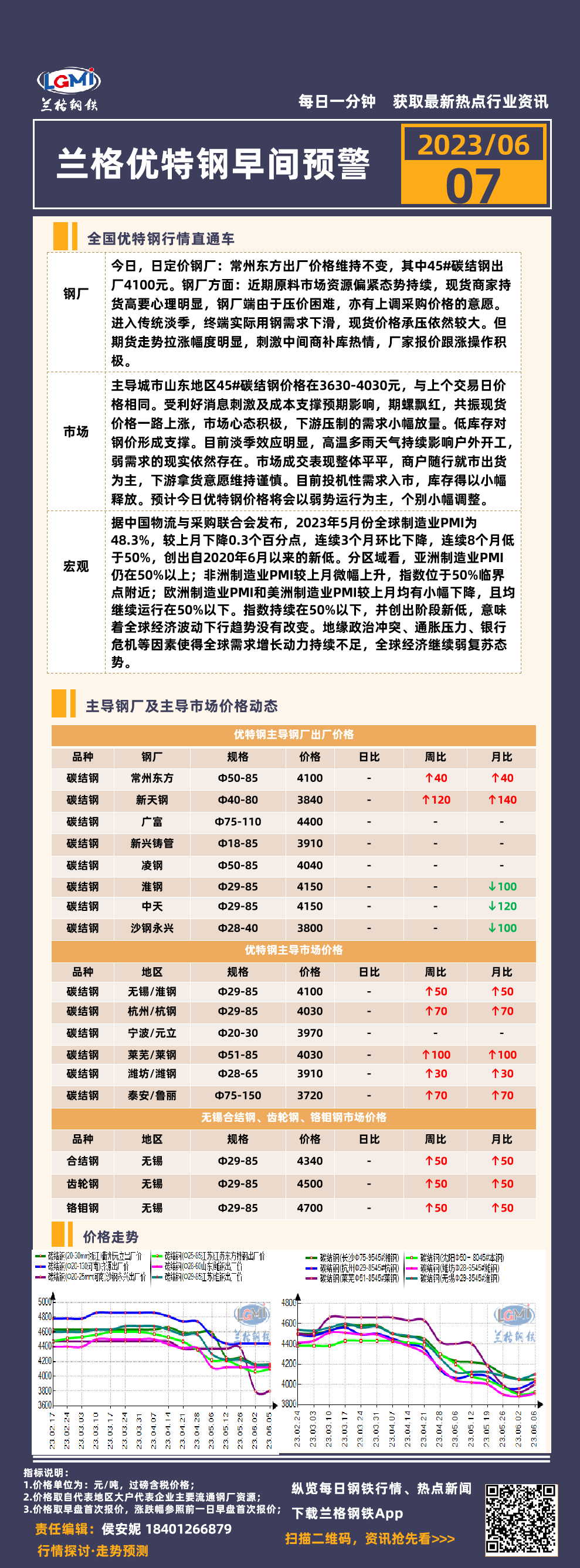 6月7日(9:30)兰格优特钢早间预警