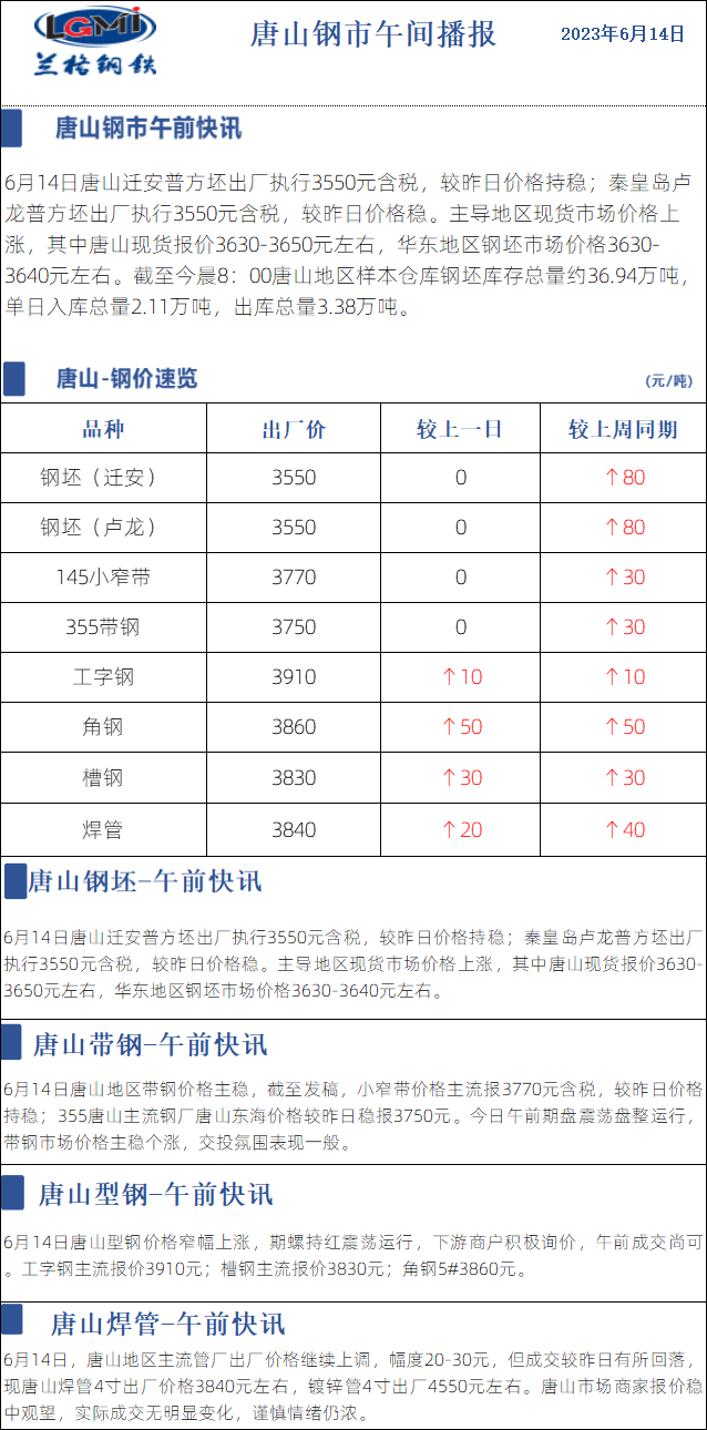 - 6月14日宁夏钢铁建筑钢材出厂价格上调50元2023/6/14