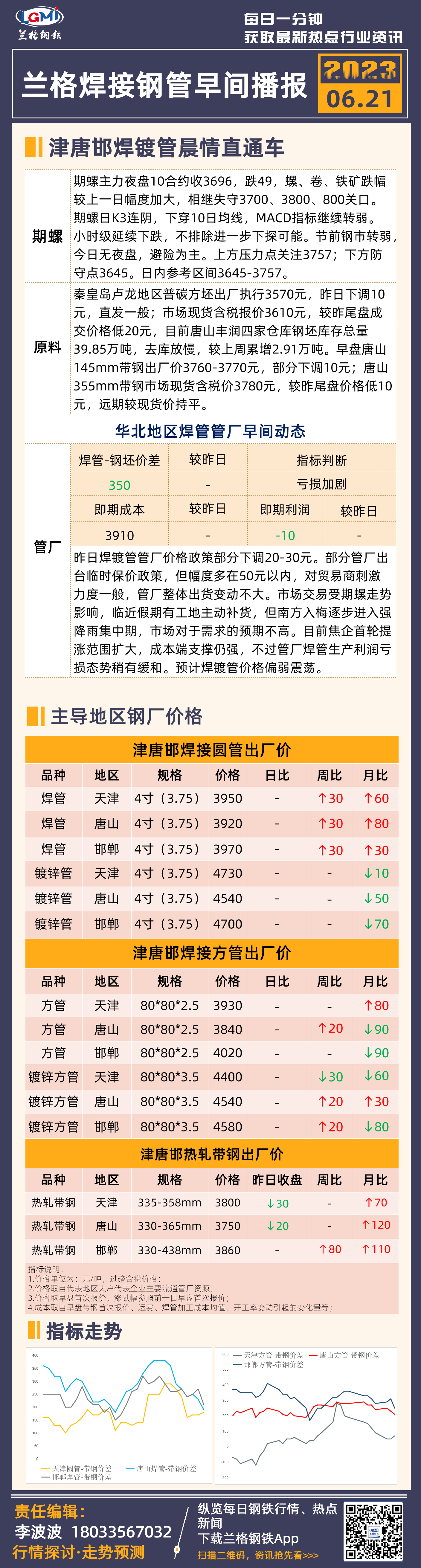 6月21日(9:20)兰格津唐邯焊管、镀锌管早间速递
