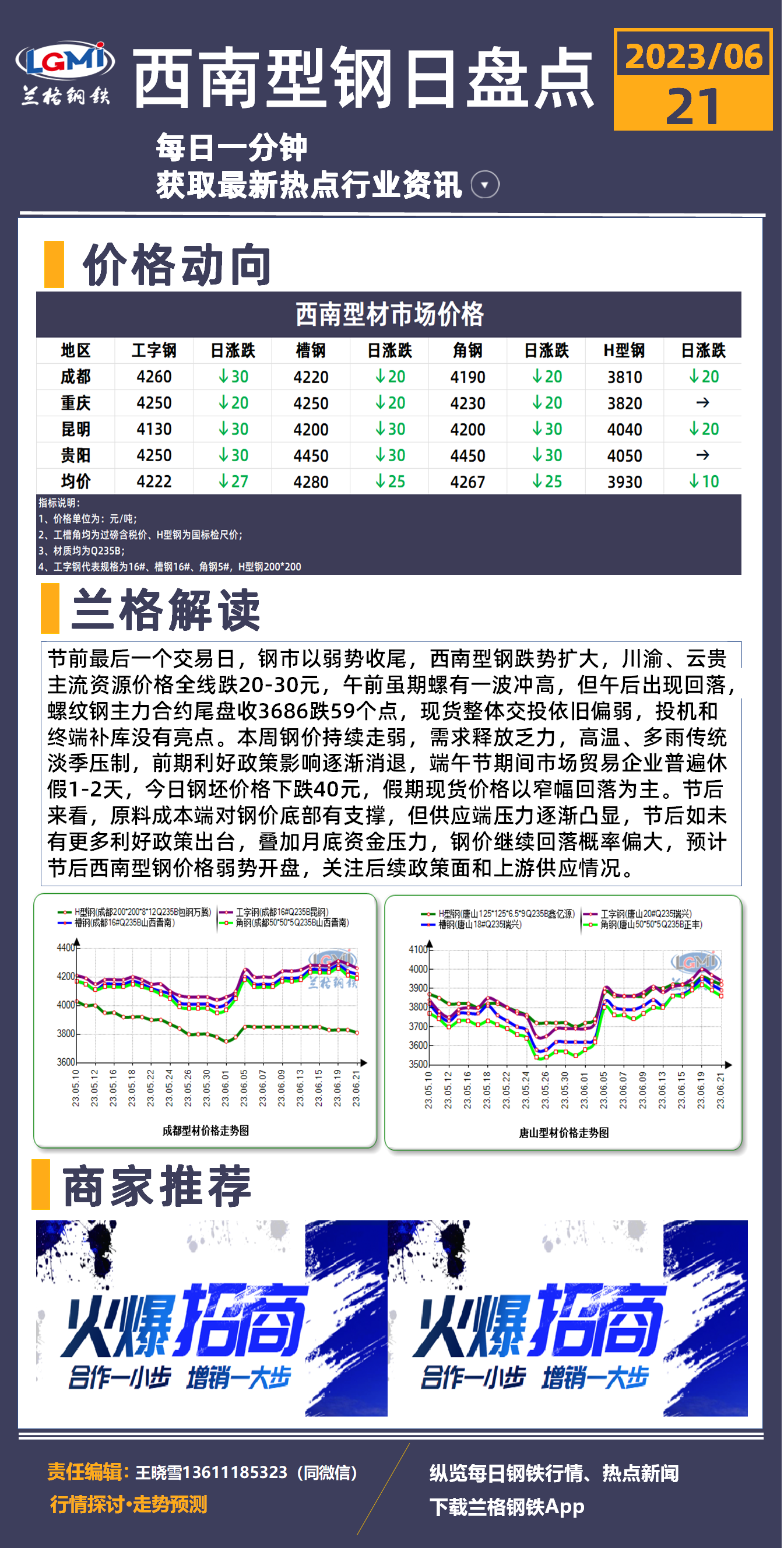 - 兰格钢铁价格指数(LGMI)第25周(23.6.19-6.23)2023/6/21