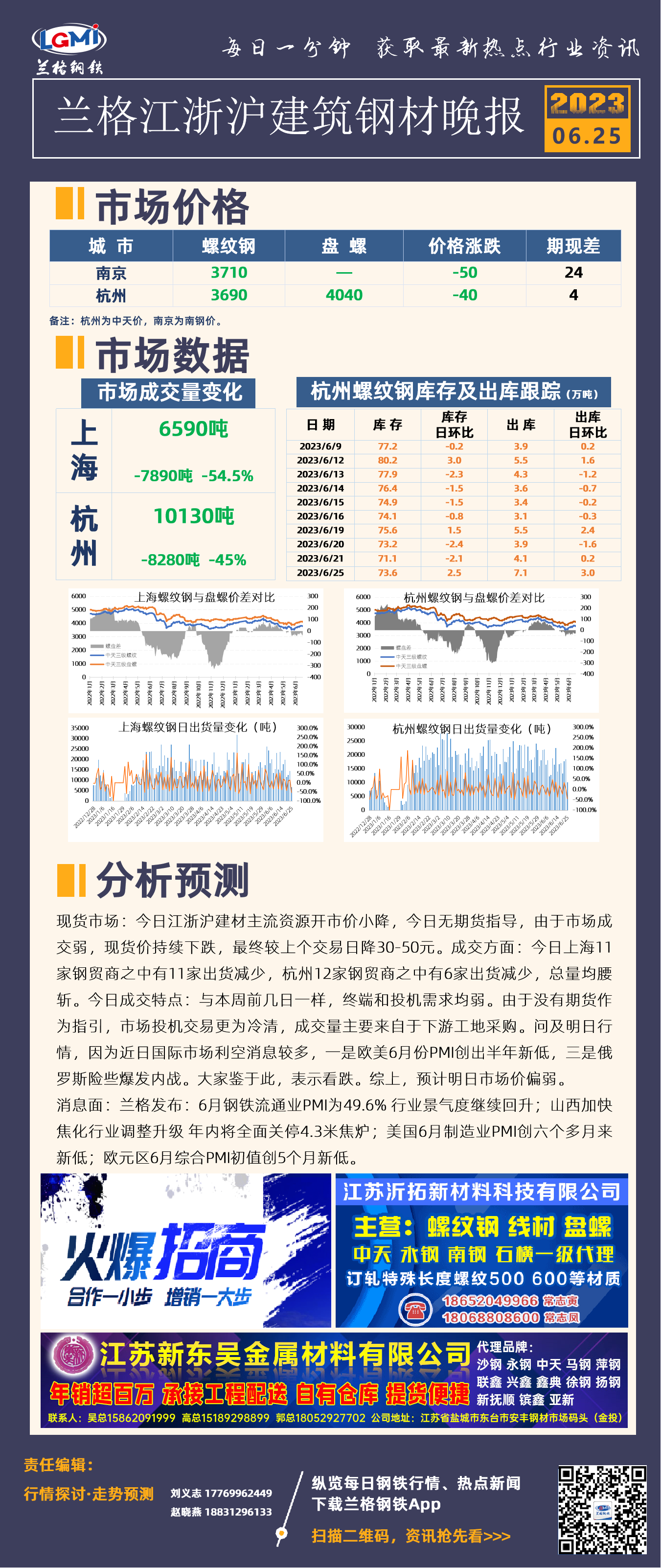 - 兰格钢铁:钢材社库“七连降” 建材缓降板材转升2023/6/25