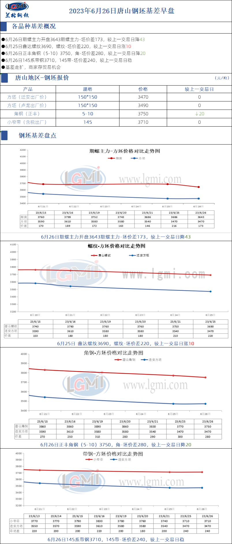 2023年6月26日唐山钢坯基差早盘