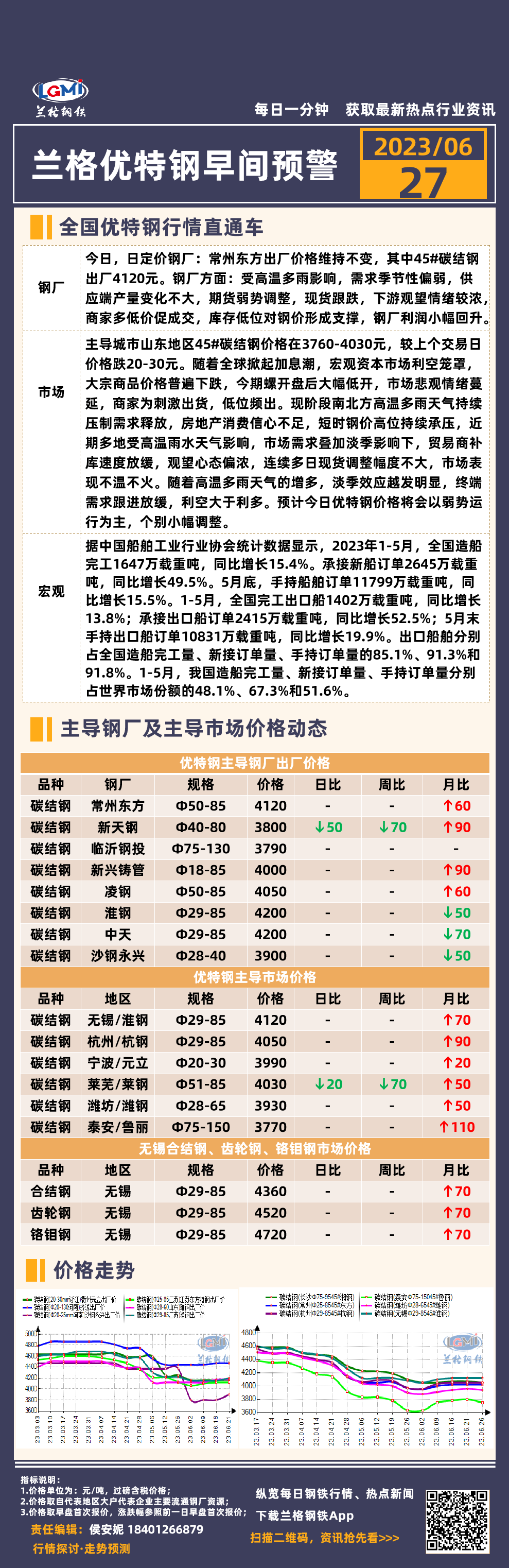 发表日期:2023/6/27 9:19:12 兰格钢铁-侯安妮 兰格钢铁网