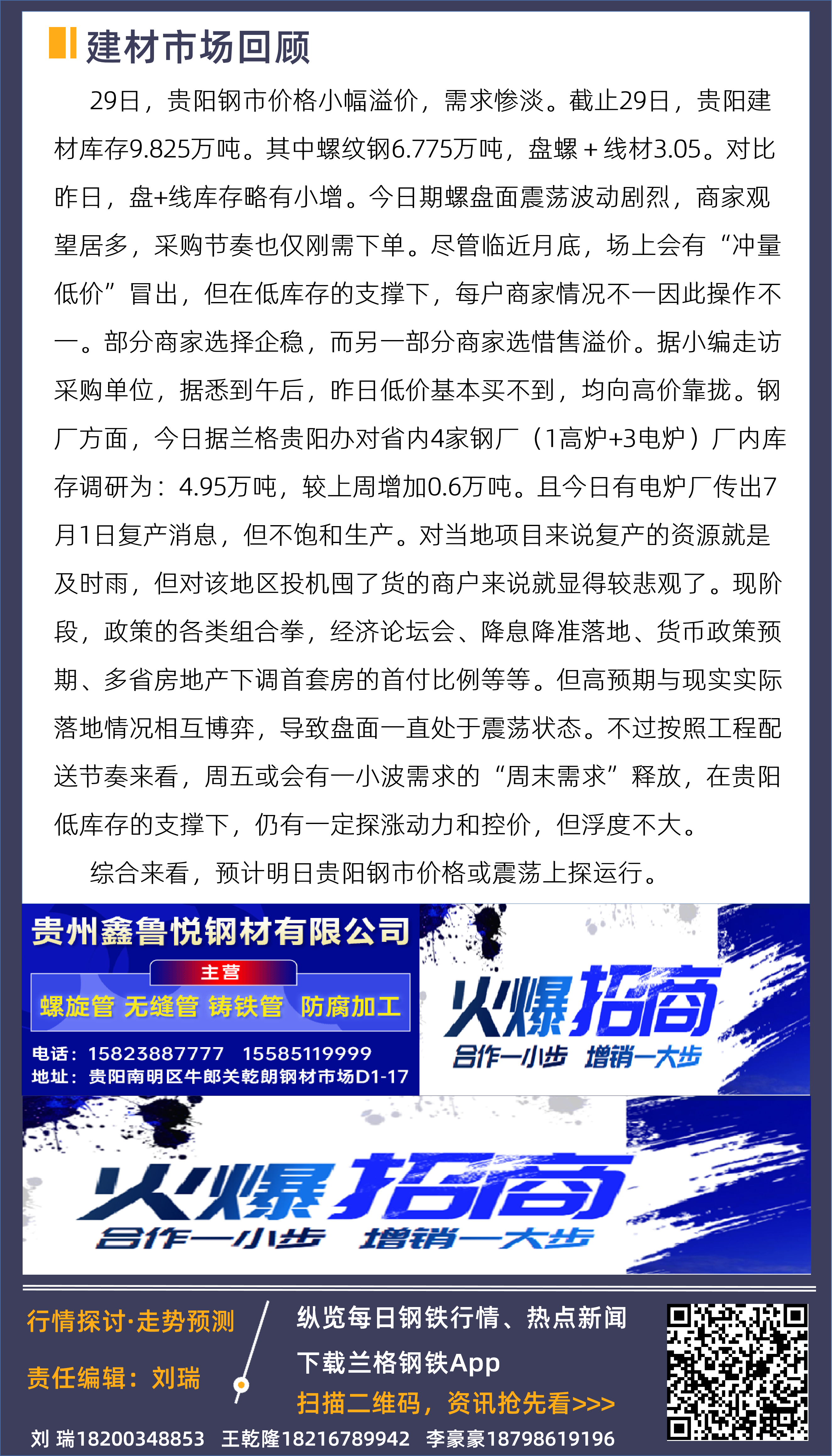 发表日期:2023/6/29 18:07:04 兰格钢铁-刘瑞 兰格钢铁网
