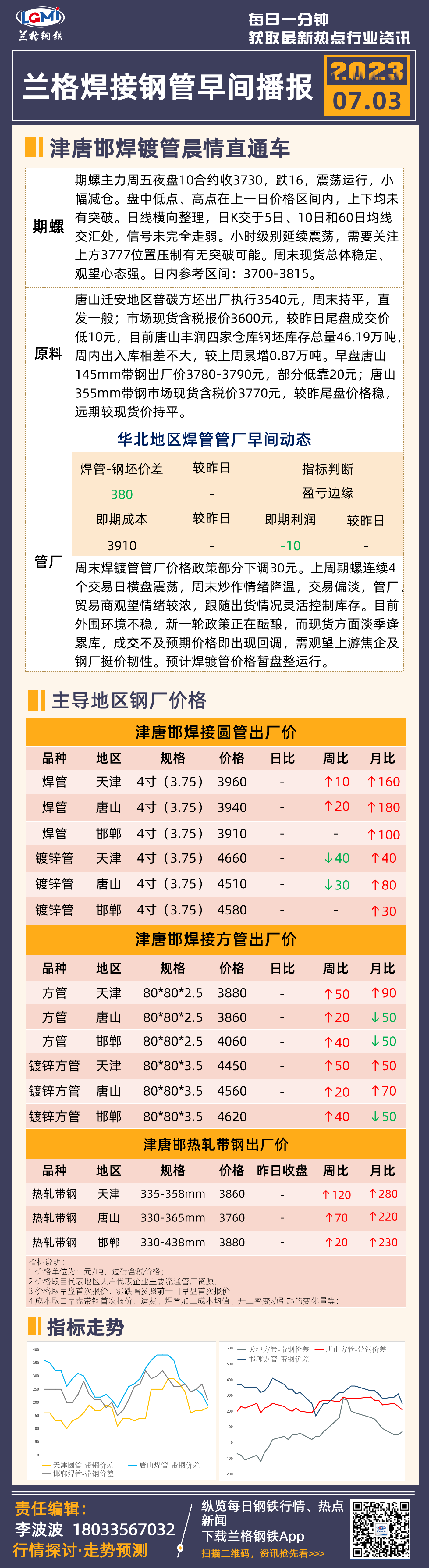 7月3日(9:20)兰格津唐邯焊管、镀锌管早间速递
