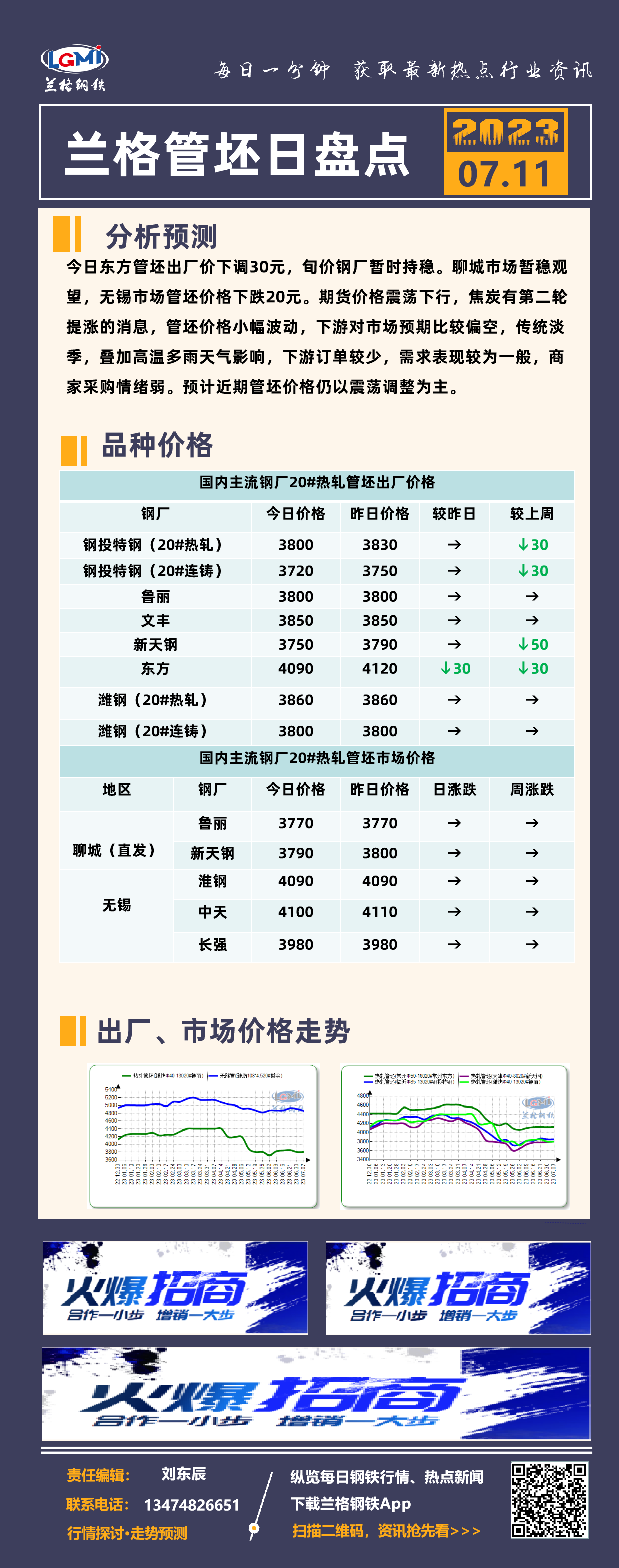 - 7月11日潞城兴宝建筑钢材出厂价格下调10元2023/7/11