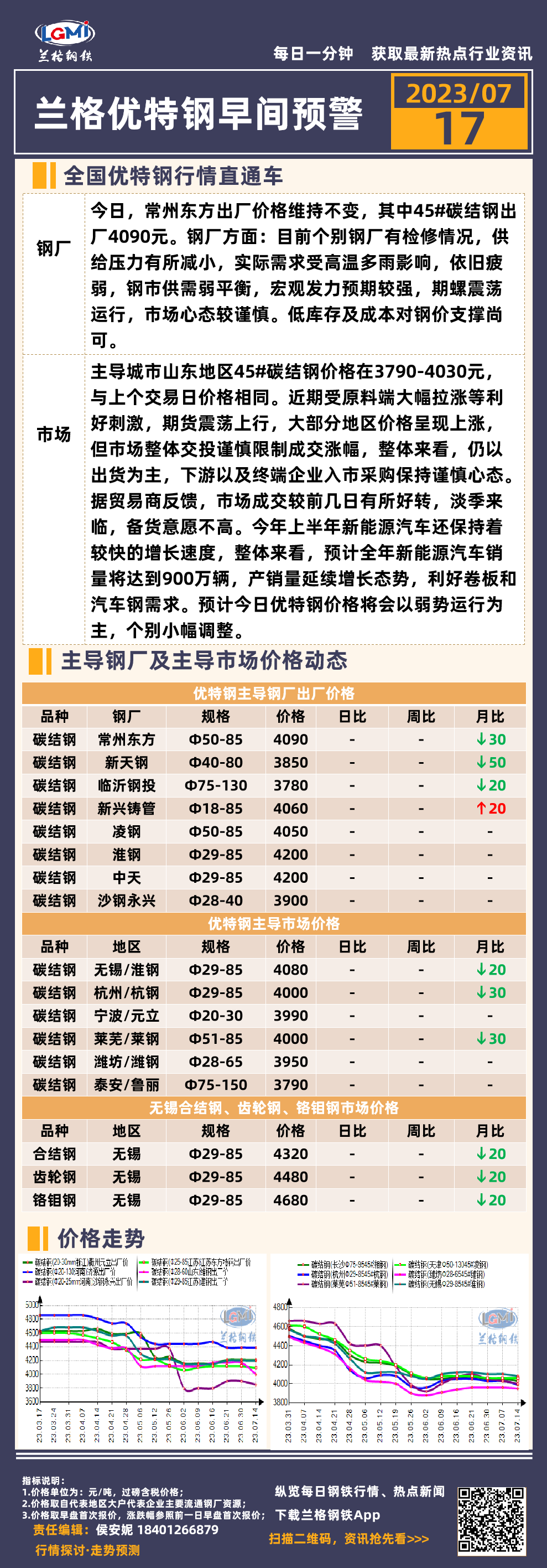 发表日期:2023/7/17 9:26:25 兰格钢铁-侯安妮 兰格钢铁网