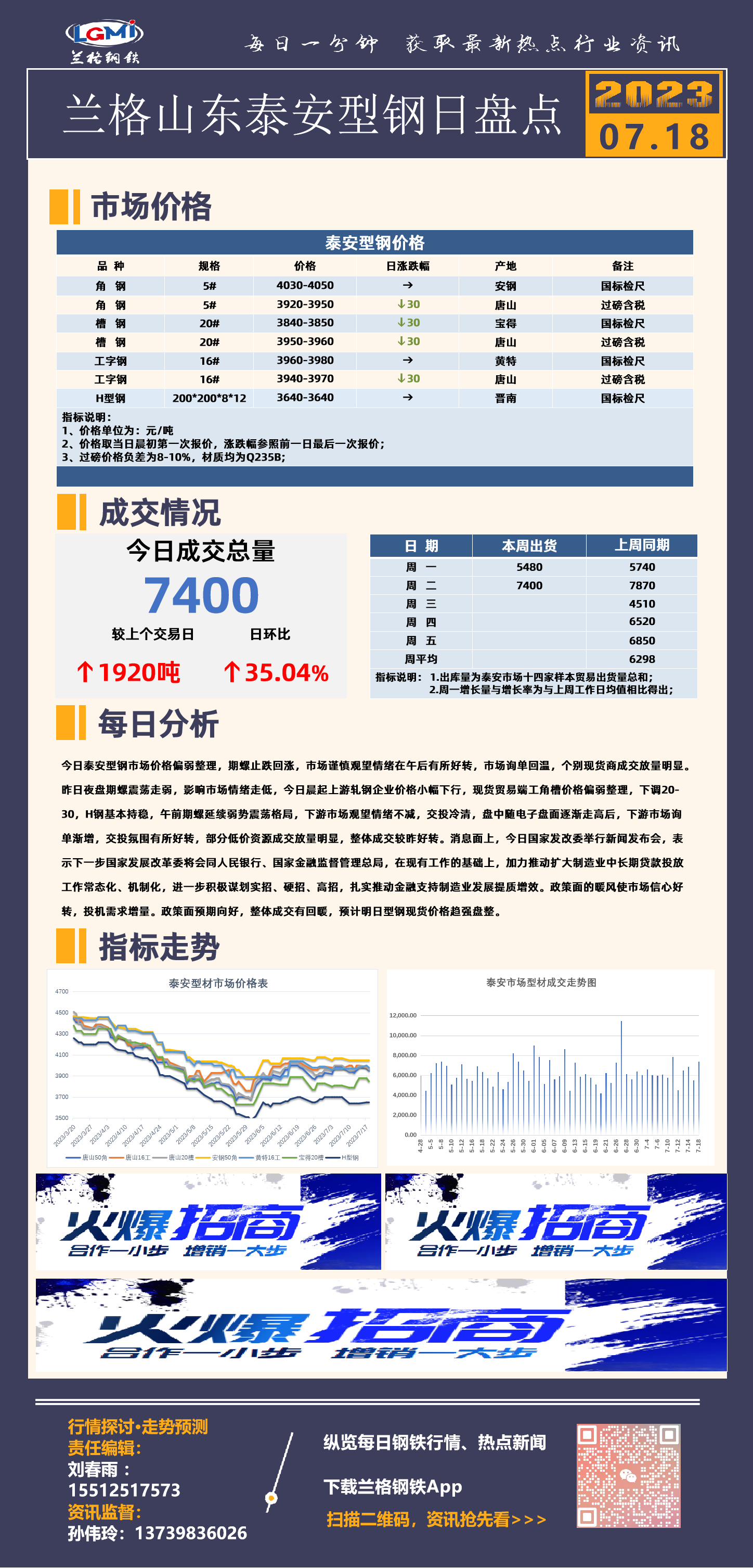 - 兰格视点:7月18日钢铁行业概览2023/7/18