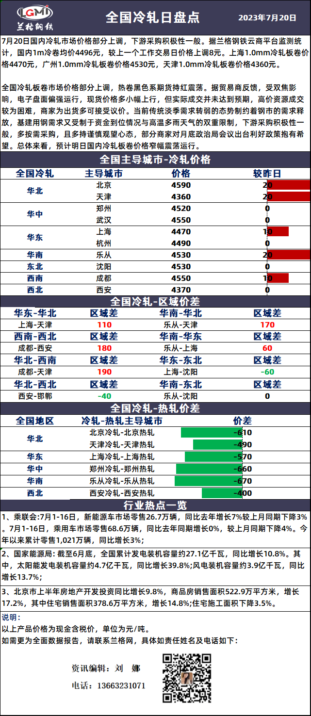 发表日期:2023/7/20 16:13:55 兰格钢铁 刘欢 兰格钢铁网