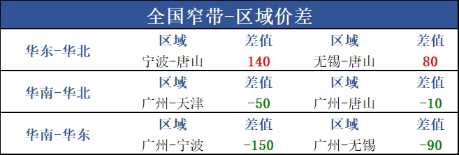 从区域价差来看,华东与华北价差80-140元;华南与华北价差10-50元;华南与华东价差90-150元。