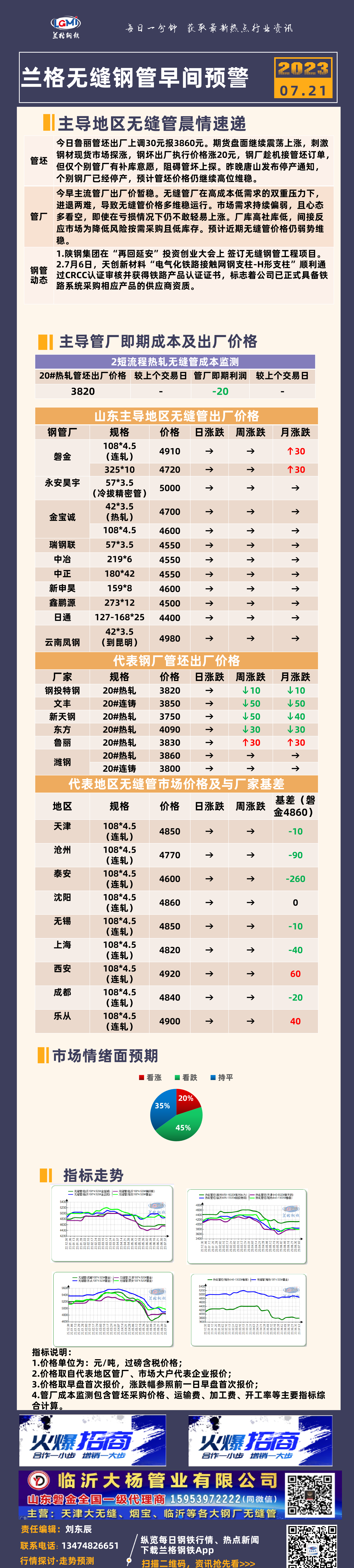 7月21日(9:20)兰格无缝钢管早间预警