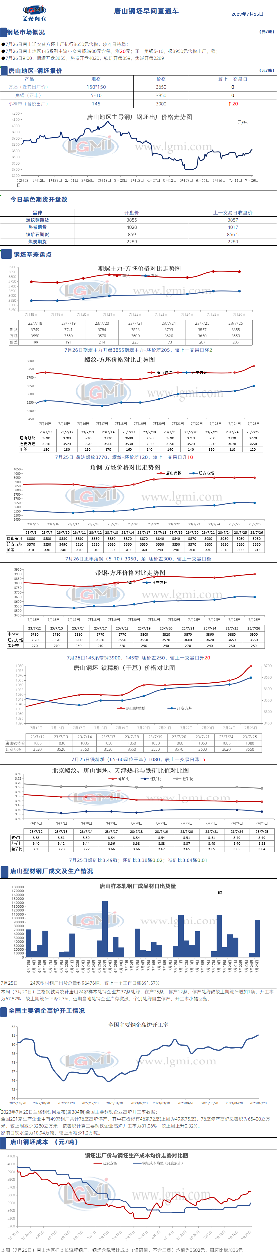 - 7月26日唐山钢坯早间直通车2023/7/26