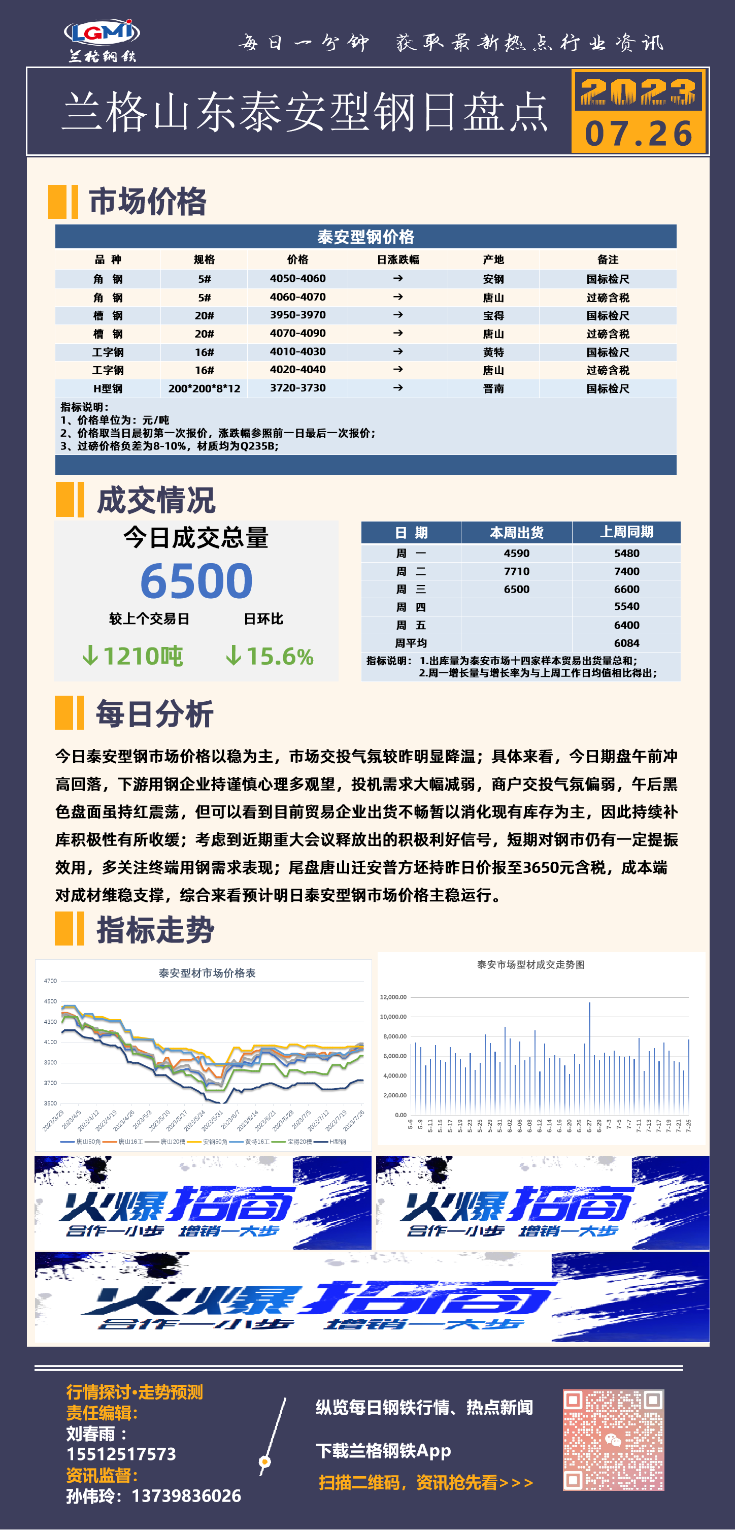 - 收评:明日唐山型材价格继续上涨2023/7/25