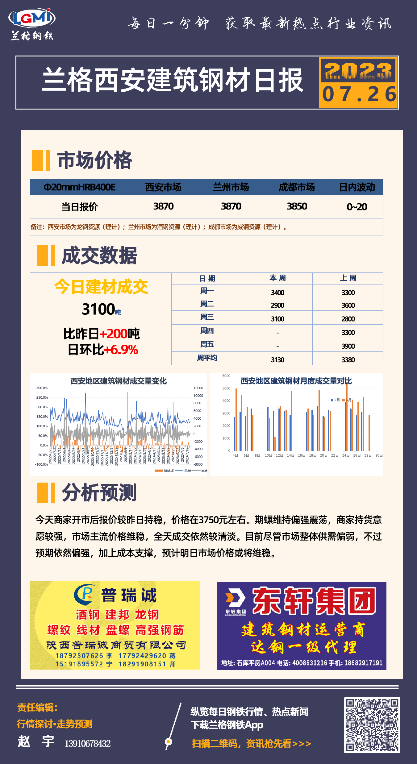- 7月26日宁夏钢铁建筑钢材出厂价格平稳2023/7/26