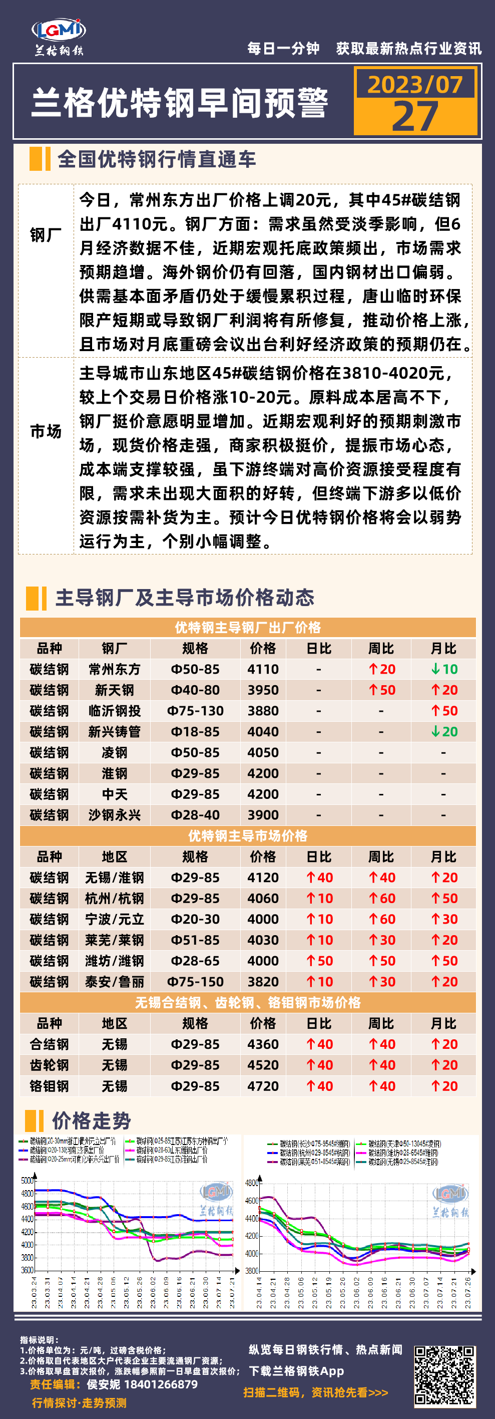 发表日期:2023/7/27 9:19:33 兰格钢铁-侯安妮 兰格钢铁网