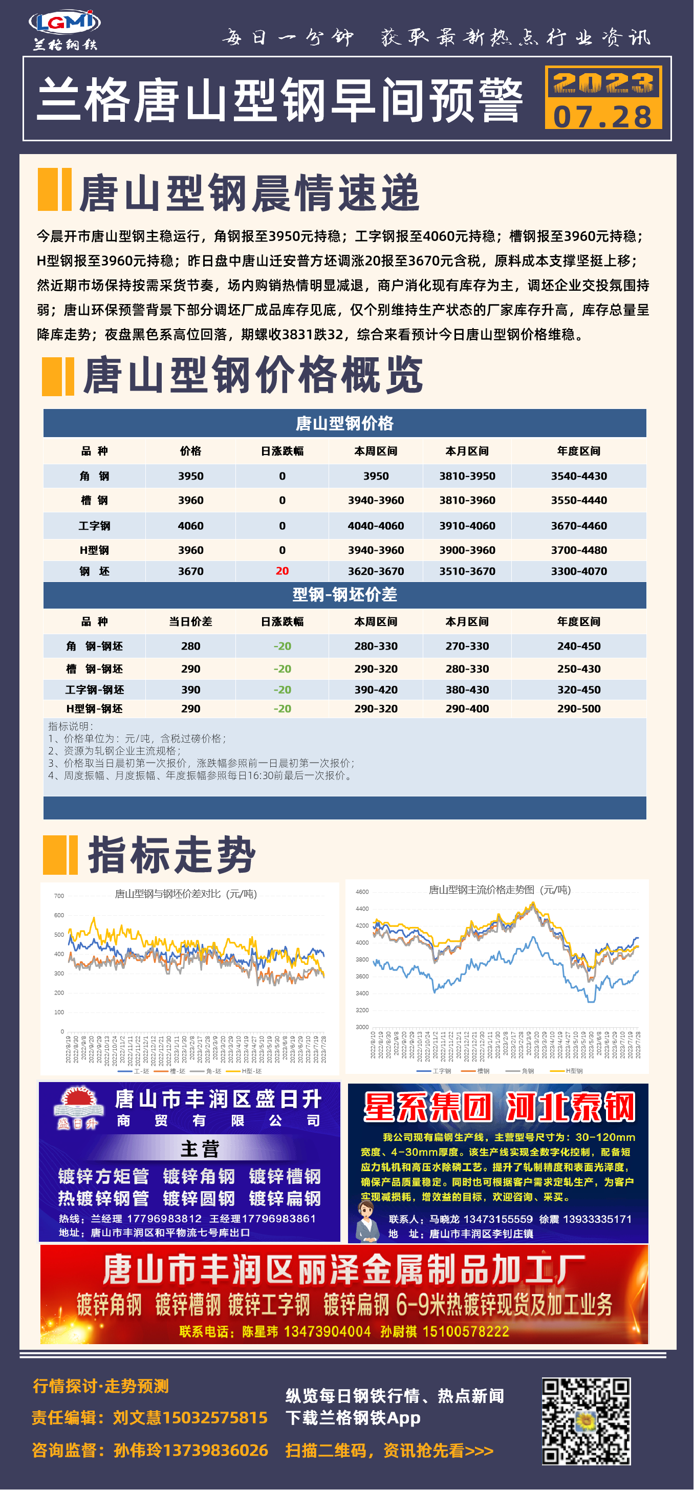 7月28日兰格唐山型钢早间预警