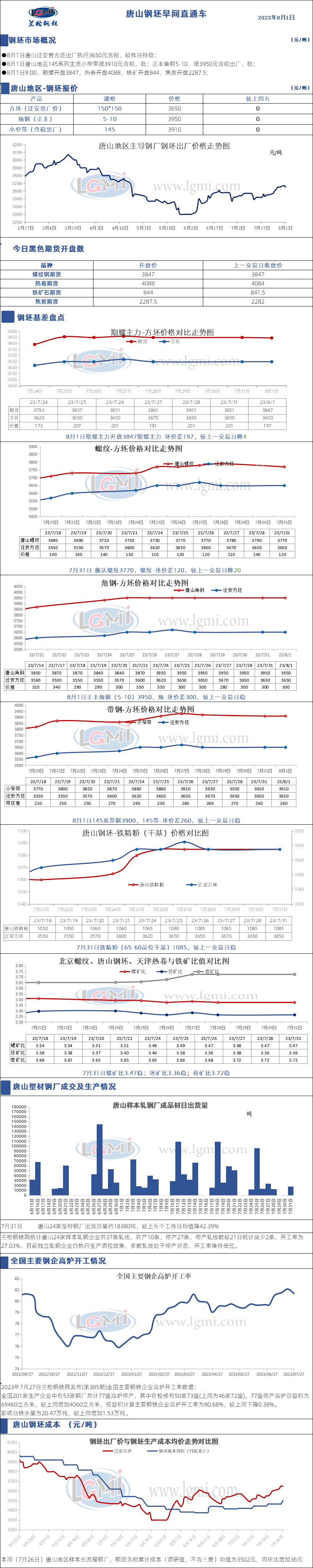 - 8月1日唐山钢坯早间直通车2023/8/1