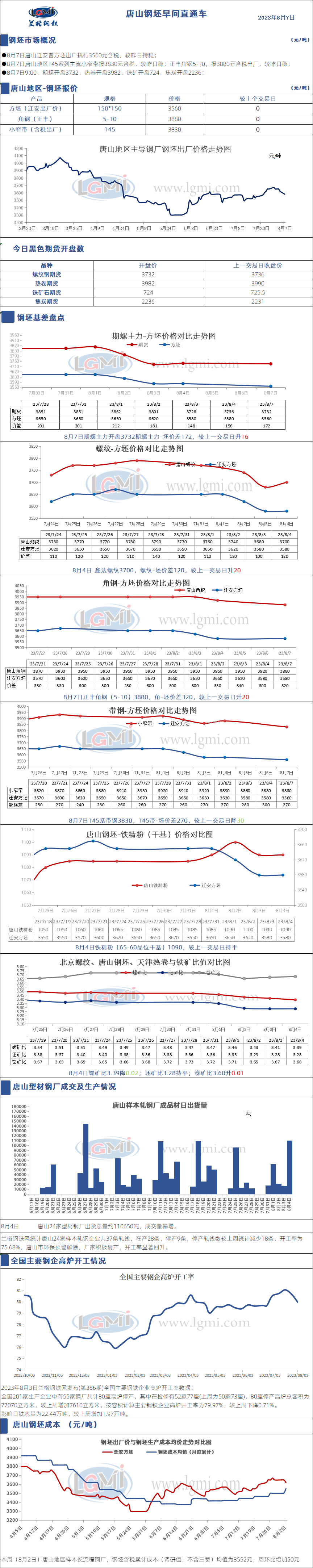 8月7日唐山钢坯早间直通车