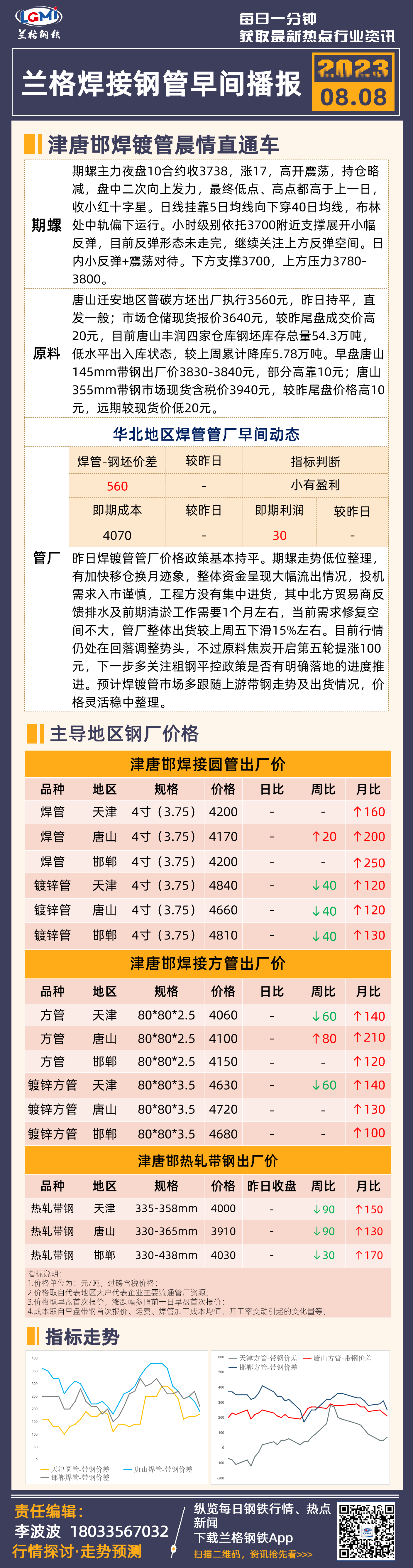 8月8日兰格津唐邯焊管、镀锌管早间速递