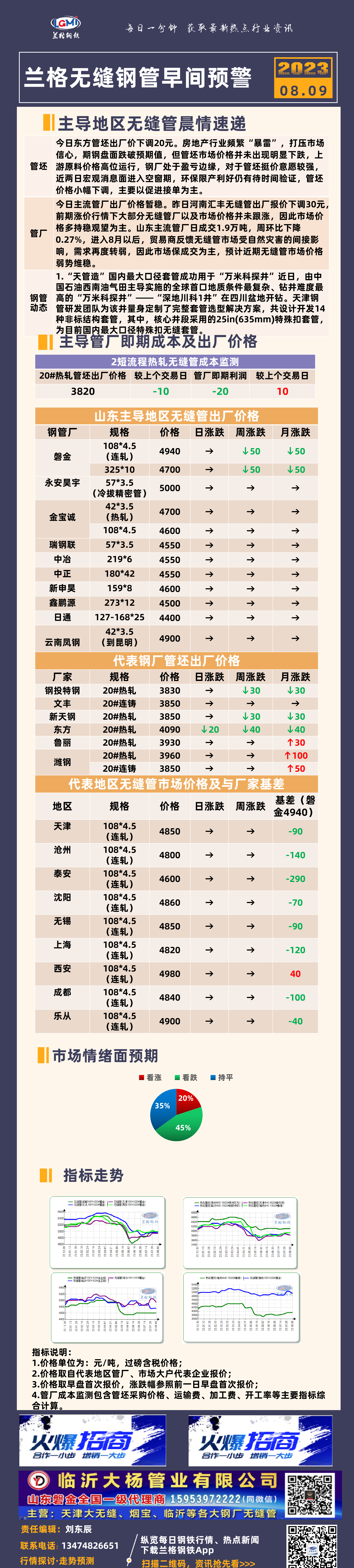 8月9日兰格无缝钢管早间预警