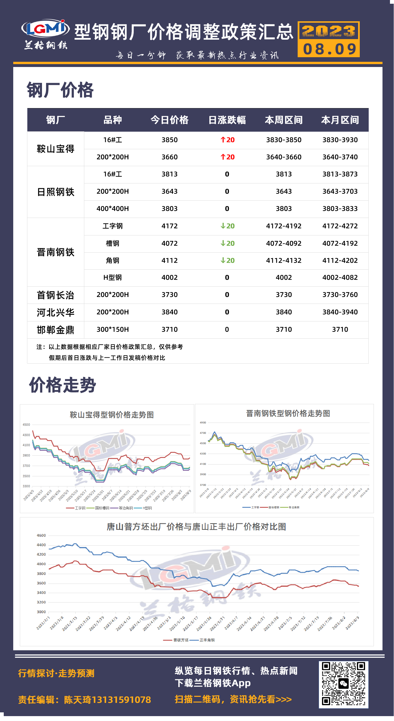 8月9日型钢钢厂价格调整政策汇总