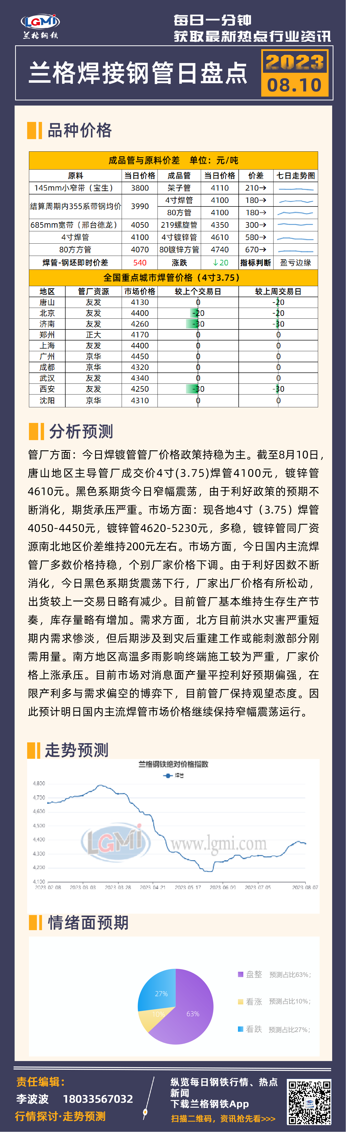 - 兰格焊管日盘点:价格主稳个调 市场保持供需博弈2023/8/10