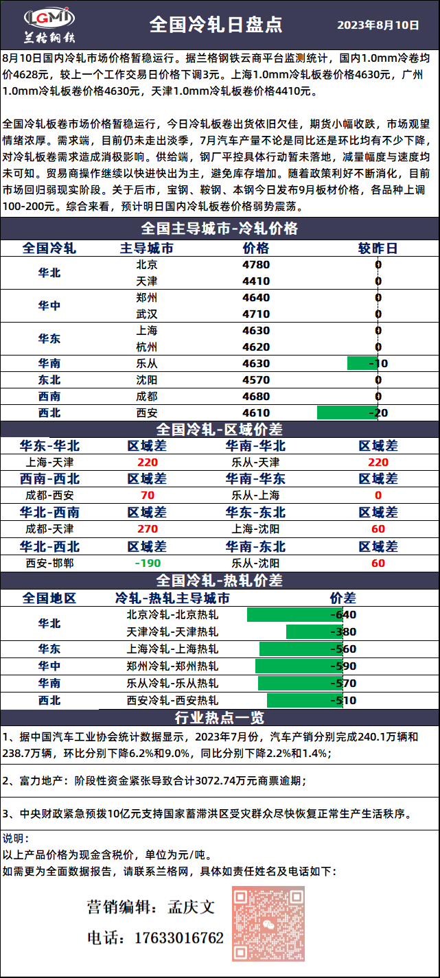 发表日期:2023/8/10 16:38:44 兰格钢铁-孟庆文 兰格钢铁网