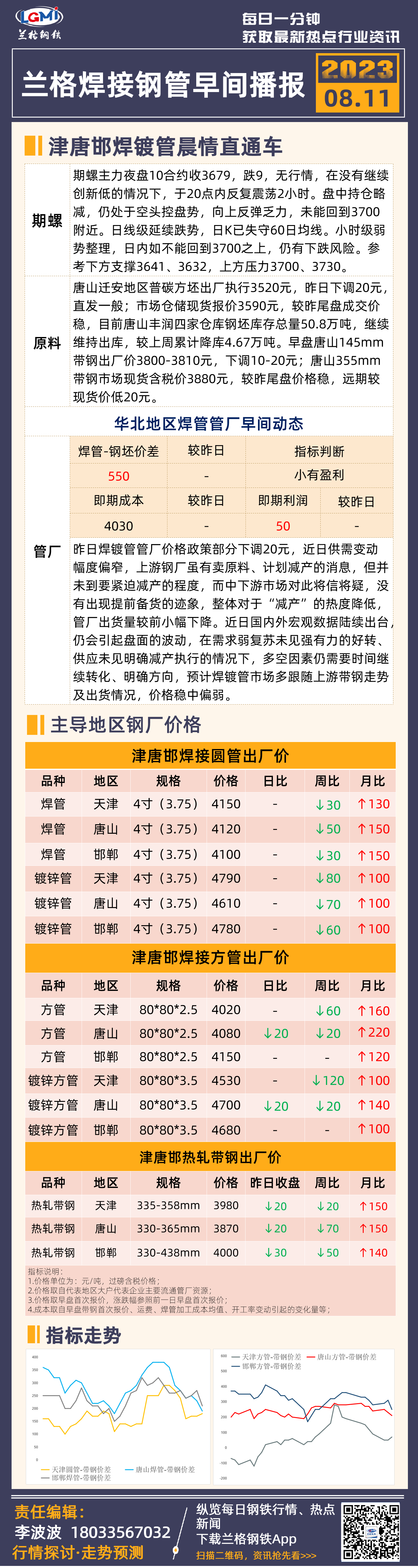 8月11日兰格津唐邯焊管、镀锌管早间速递