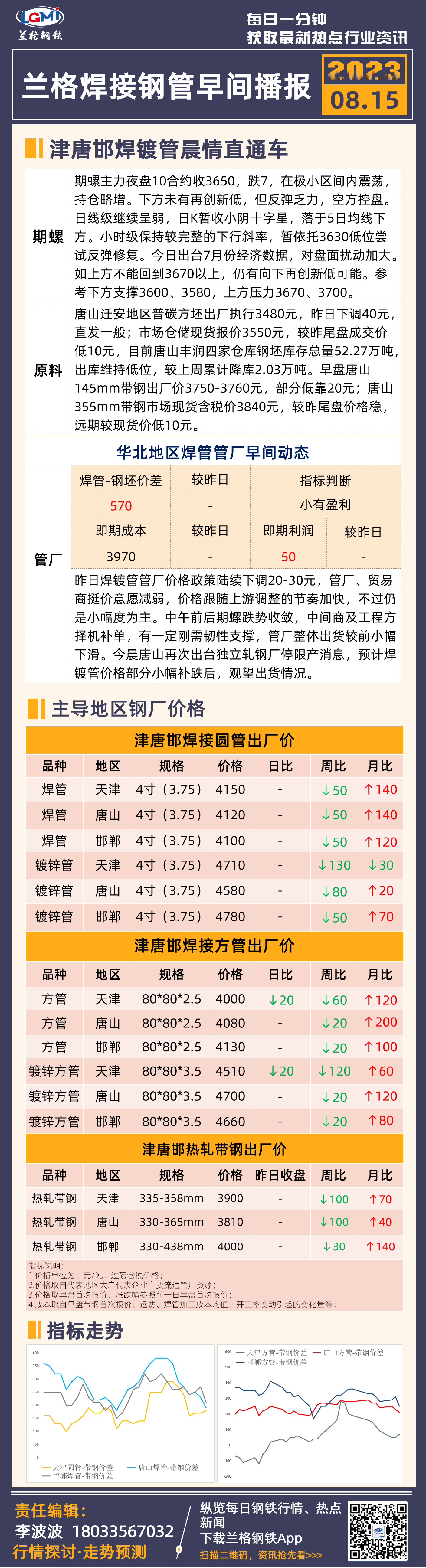 8月15日兰格津唐邯焊管、镀锌管早间速递
