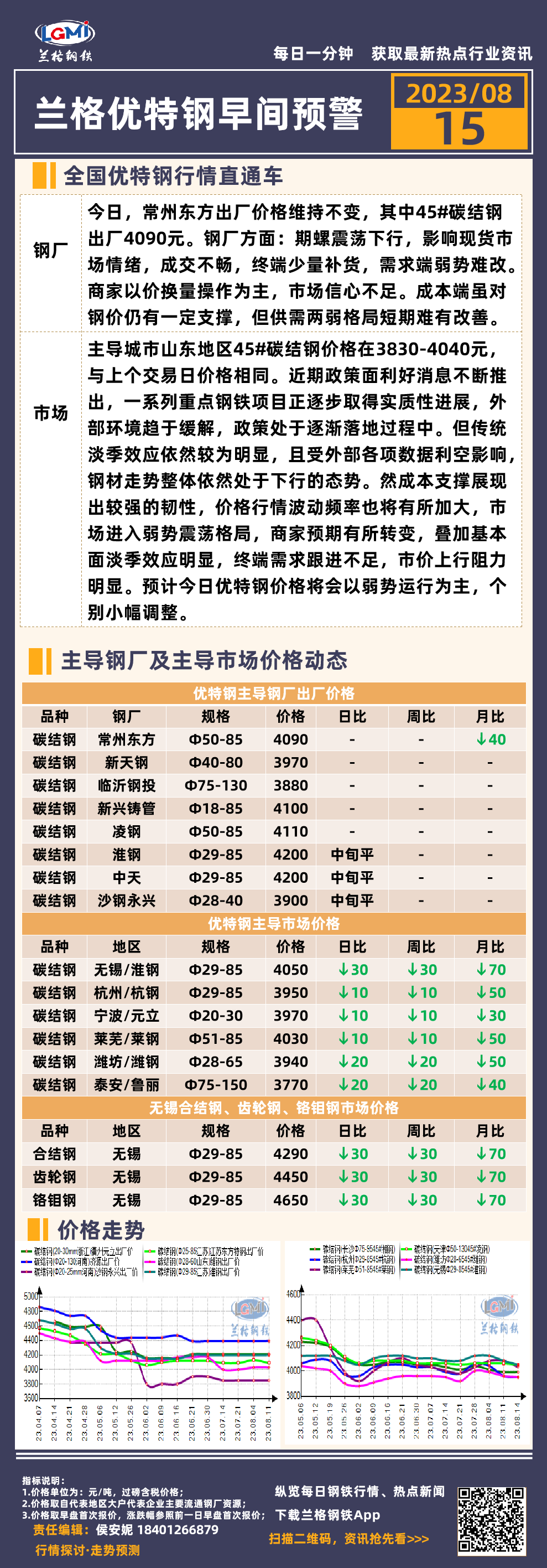 发表日期:2023/8/15 9:30:00 兰格钢铁-侯安妮 兰格钢铁网