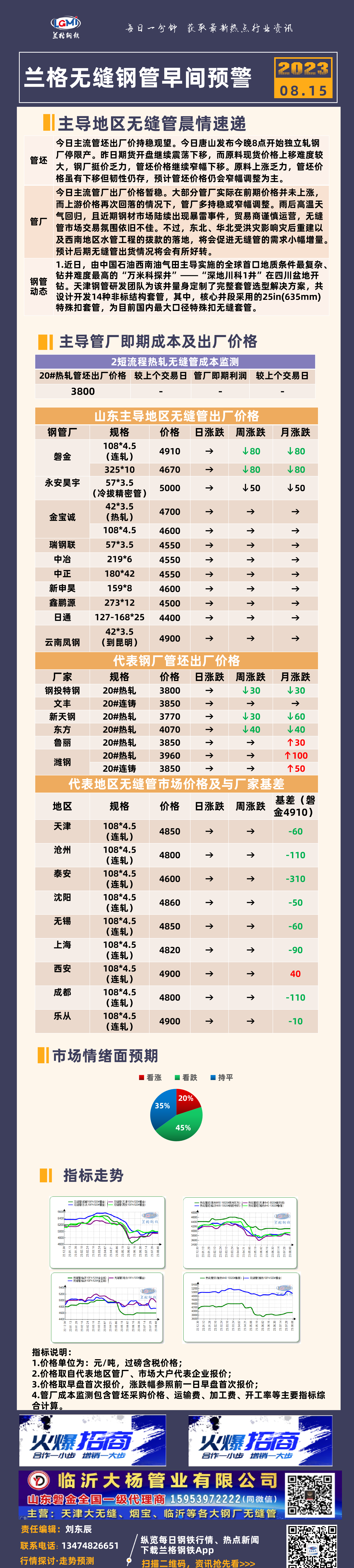 8月15日兰格无缝钢管早间预警