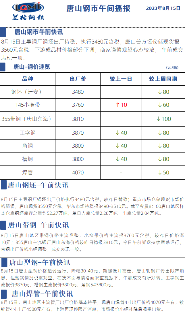 发表日期:2023/8/15 11:37:49 兰格钢铁-尹思雨 兰格钢铁网