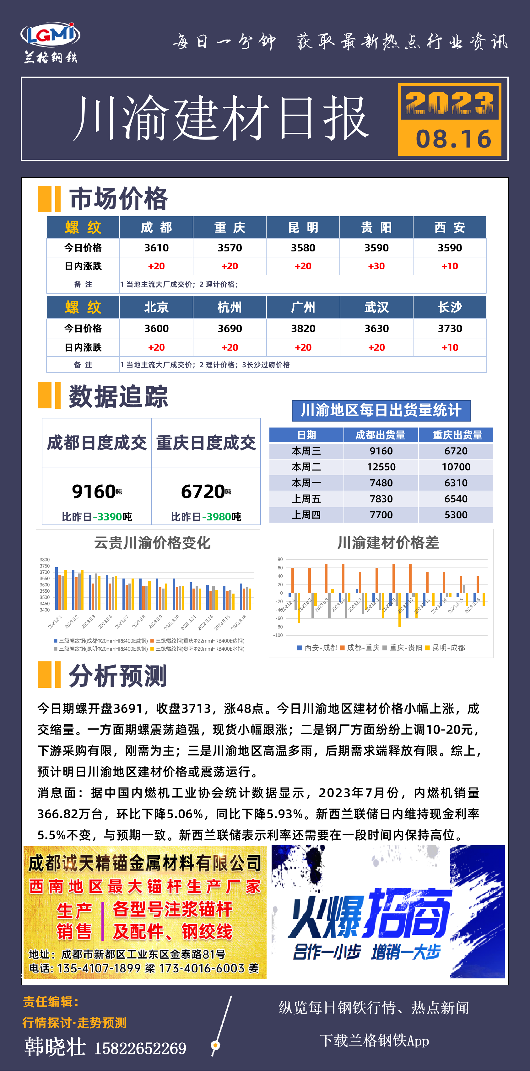 - 川渝地区建材价格小幅上涨 成交缩量2023/8/16