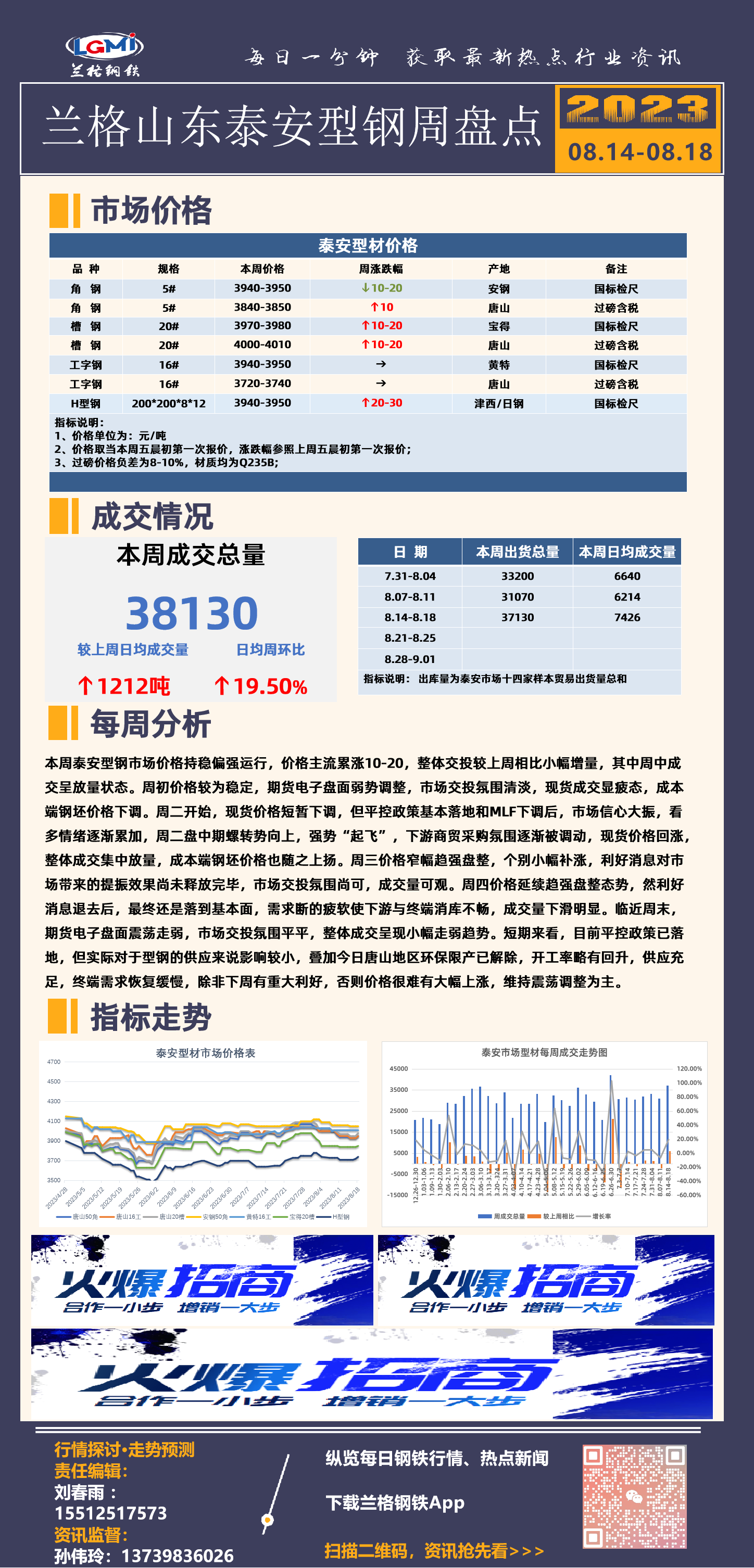 泰安型钢周盘点:价格窄幅震荡 成交周中集中放量
