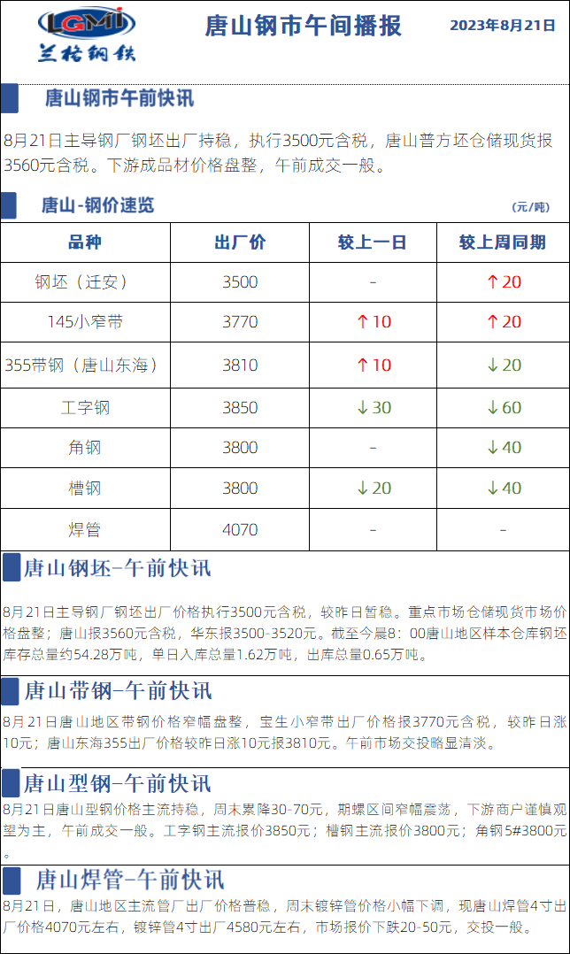 8月21日兰格唐山钢市午间播报