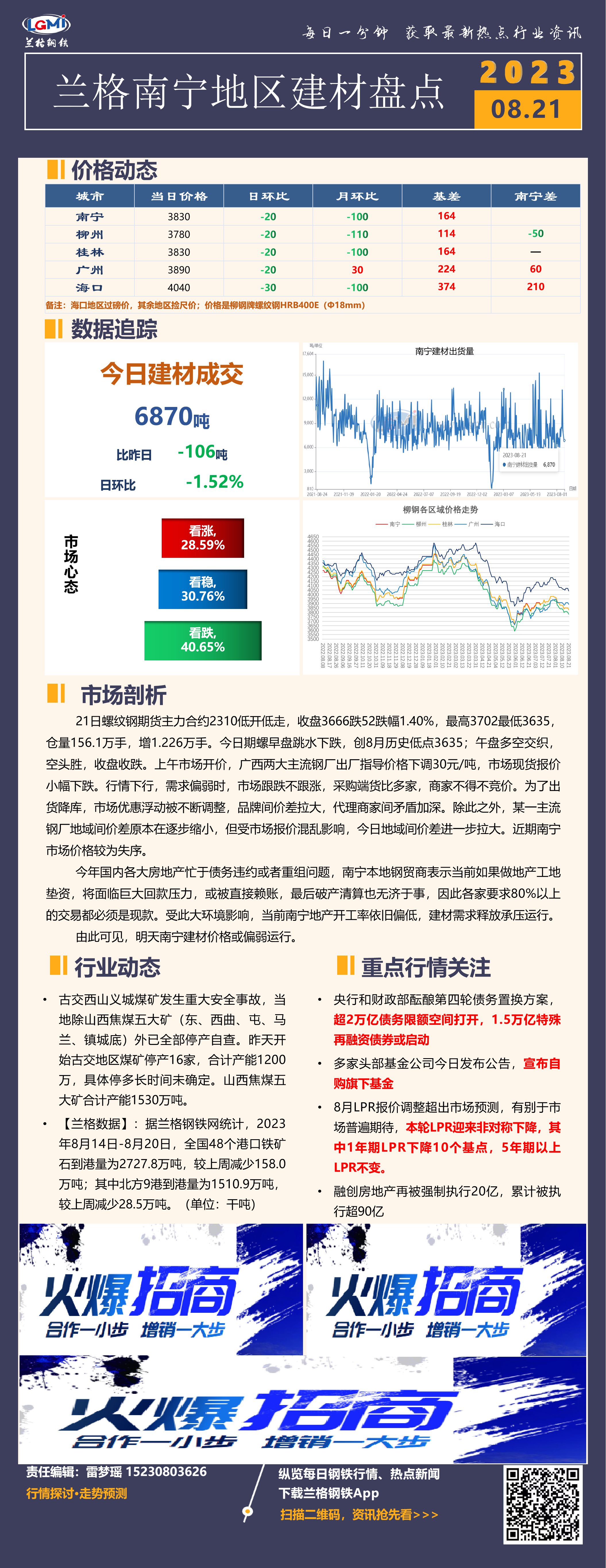 - 8月22日广西桂鑫钢铁建筑钢材出厂价格上调20元2023/8/22